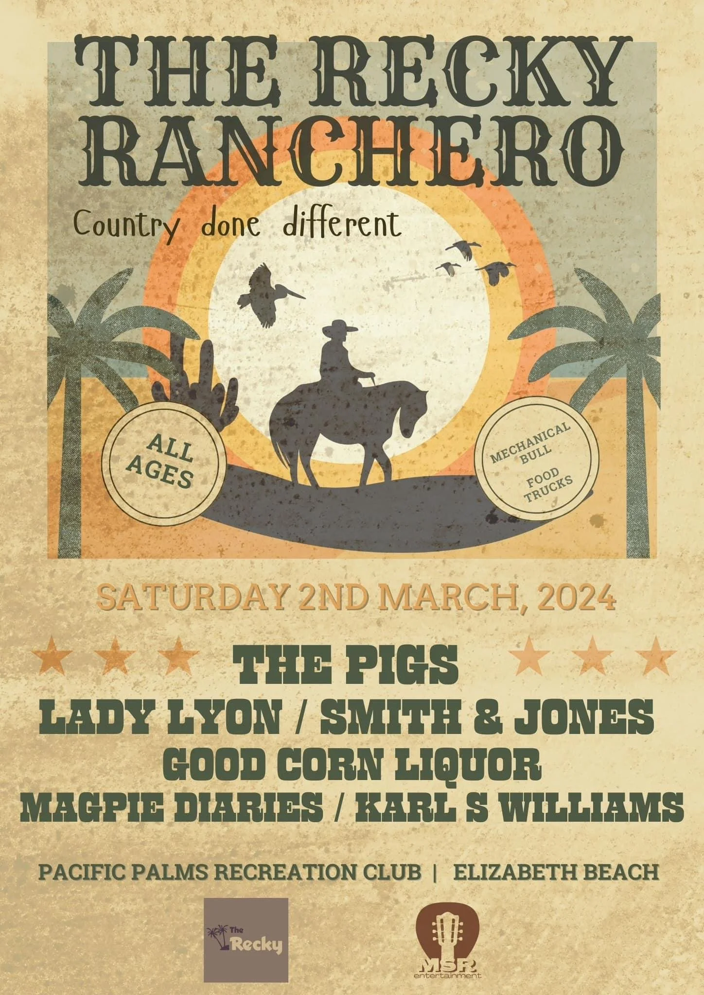The Recky Ranchero, Elizabeth Beach NSW Saturday 2 March 2024 1:00 pm 9:00 pm The Recky 3957 The Lakes Way Elizabeth Beach, NSW, 2428 Australia (map) Google Calendar ICS Tickets via Eventbrite
